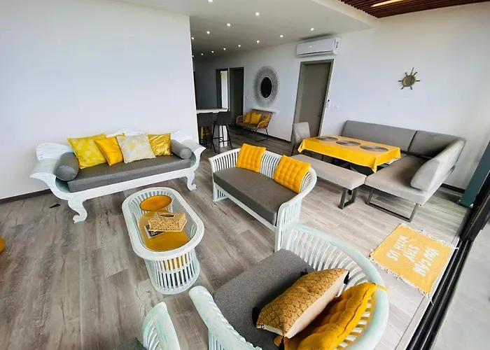 The 2-room Cozy Seaview Penthouse Apartment Flic en Flac offers proximity to such tourist attractions as Crafts Galery, situated nearly 5 minutes' walk away. Offering a terrace, the spacious 130 m² apartment also features a rooftop swimming pool for guests ultimate relaxation.